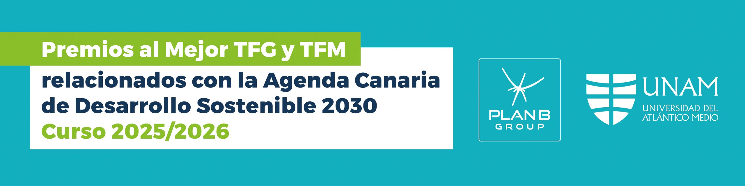 Plan B Group y la Universidad del Atlántico Medio (UNAM) conscientes de los desafíos sociales y medioambientales que enfrentan la sociedad actual y haciendo uso de sus capacidades para promover la consecución de las metas de desarrollo sostenible reflejadas en la Agenda 2030 y la Agenda Canaria de Desarrollo Sostenible, promueven los II Premios a mejor Trabajo Fin de Grado y Trabajo Fin de Máster relacionados con la Agenda Canaria de Desarrollo Sostenible 2030 entre su alumnado durante el curso académico 2025/2026.